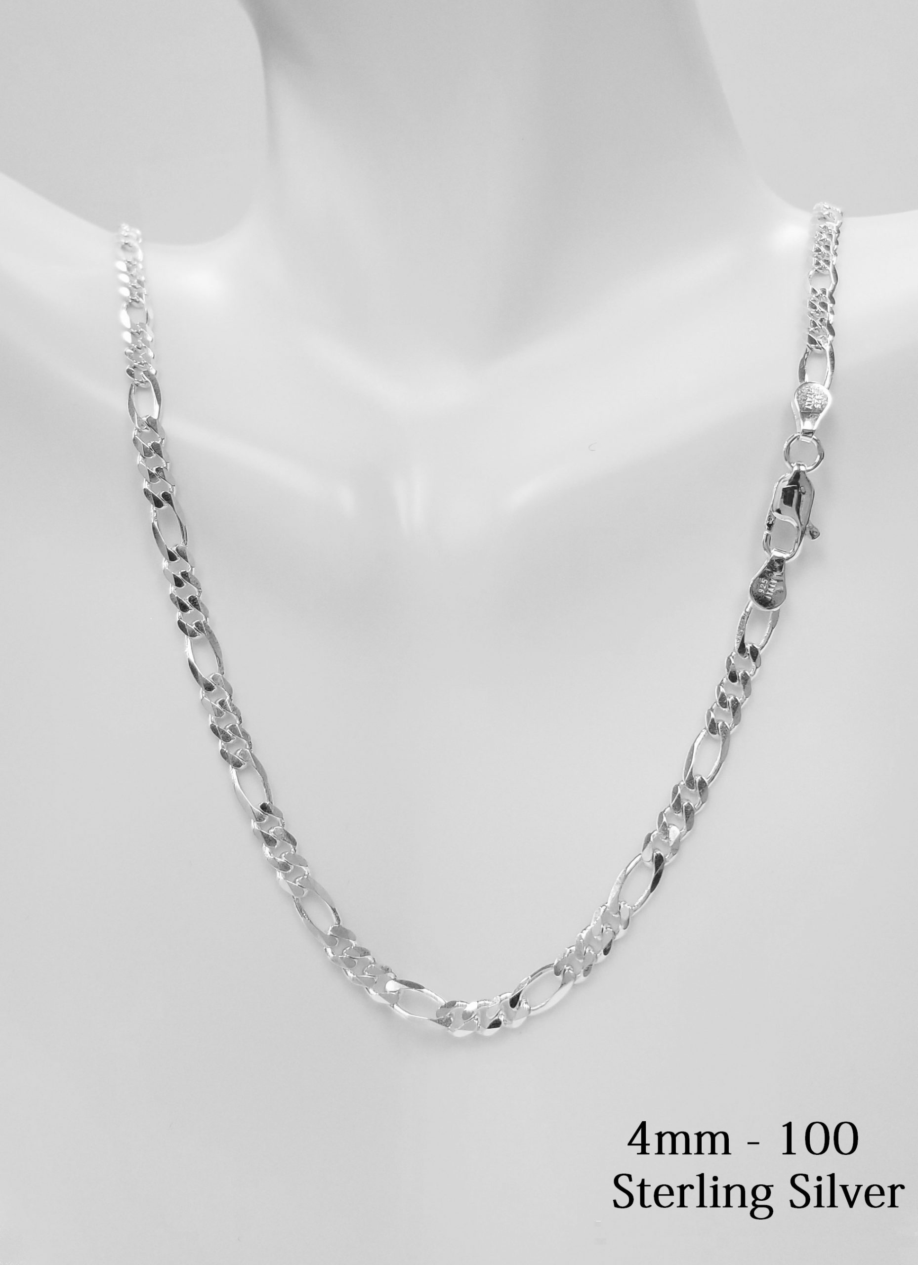 925 Sterling Silver 4 mm Figaro Chain Necklace