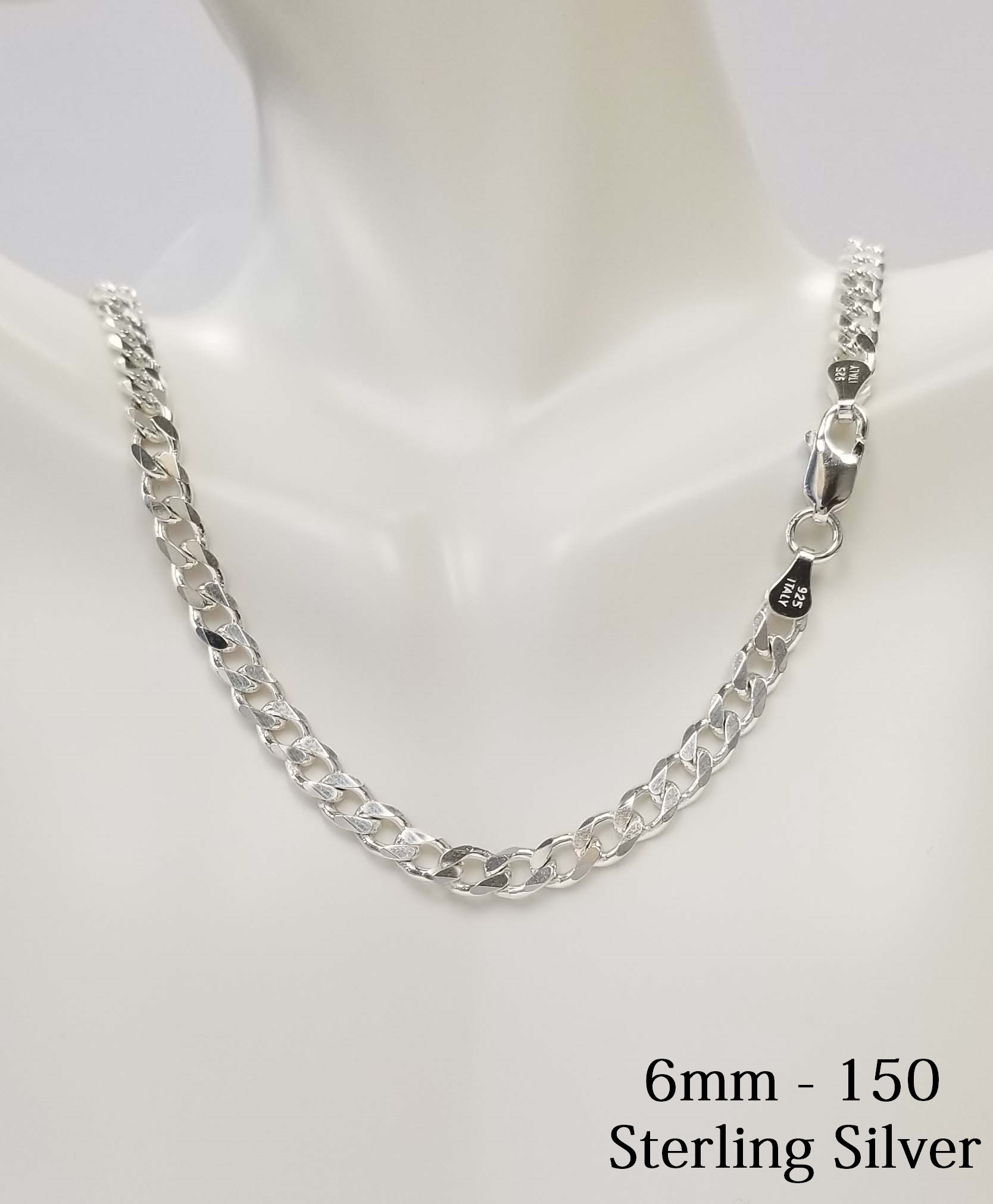 925 Sterling Silver 6 mm Curb Chain Necklace