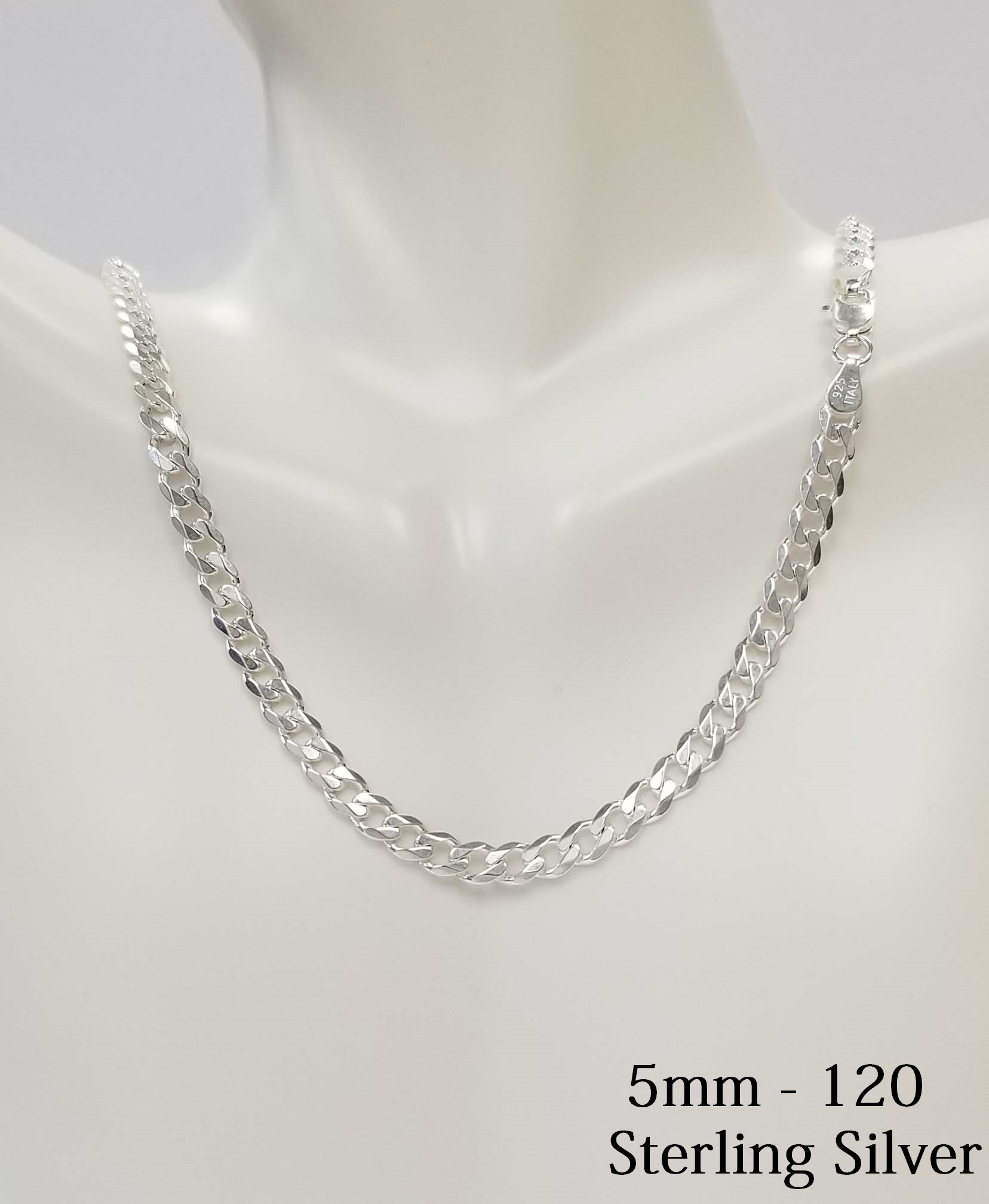 Sterling Silver Curb 5 mm Chain Necklace 120 Gauge