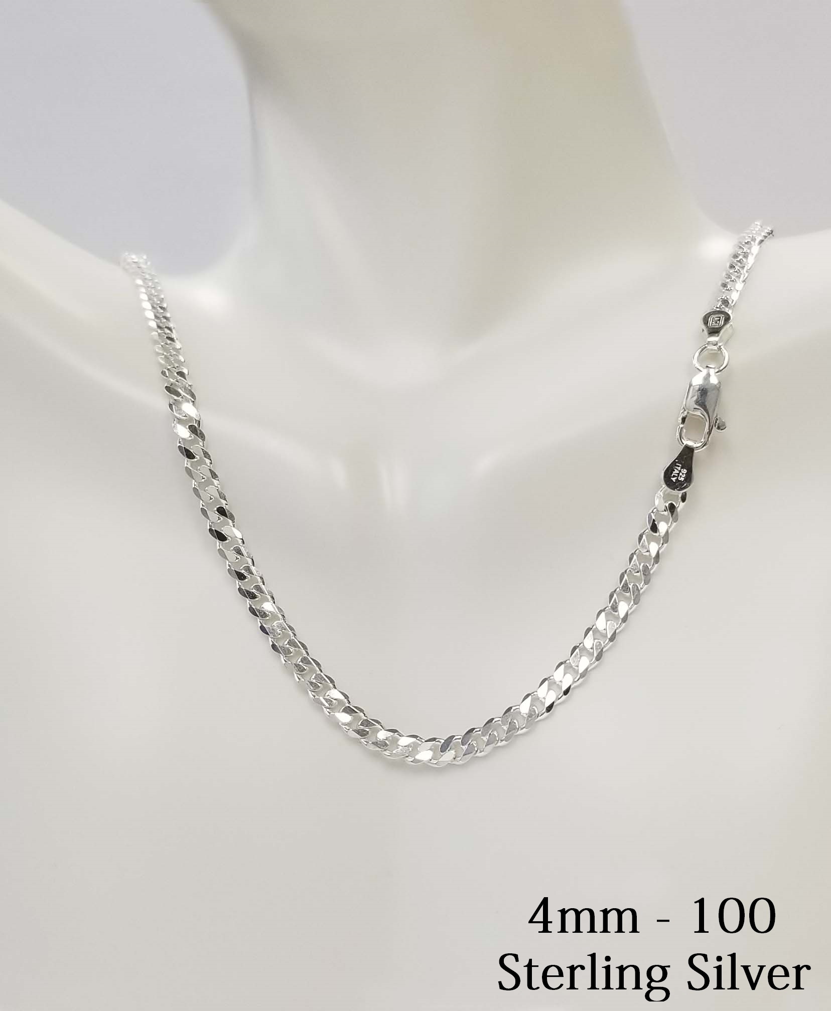925 Sterling Silver Curb 4mm Chain Necklace