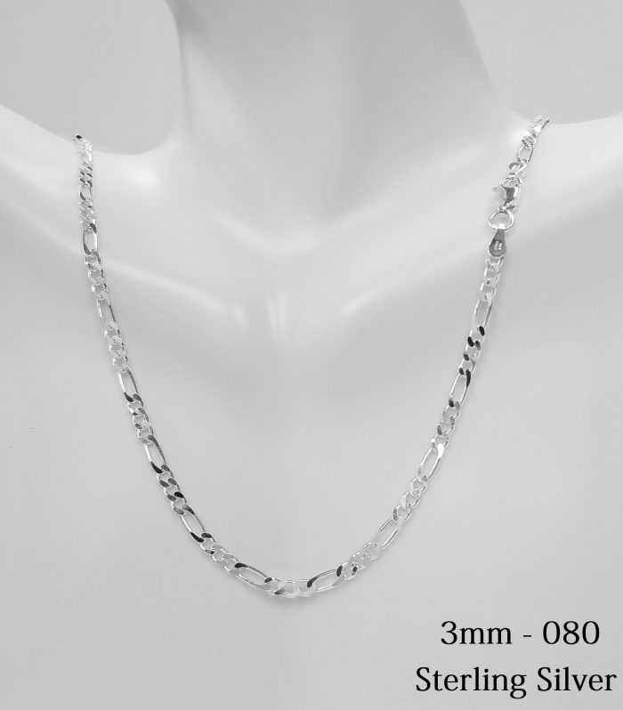 Sterling Silver Figaro 3 mm Chain Necklace