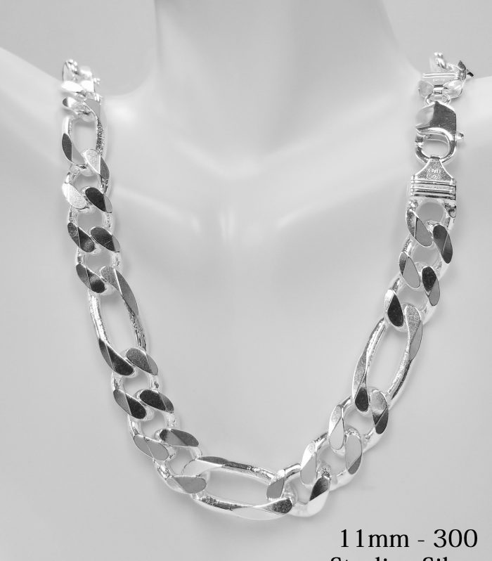 925 Sterling Silver Solid 11 mm Figaro Necklace Chain
